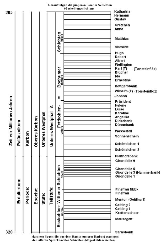 Kohlenflözschichten-Graphik im Wittener und Bochumer Raum
