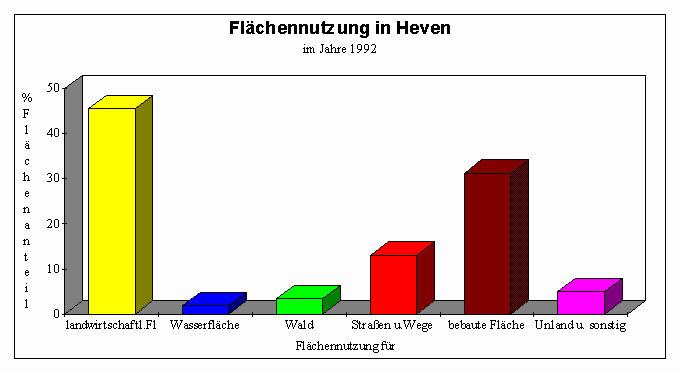 der Hevener Fläche bebaut und 13 % sind Verkehrswege. Es ist